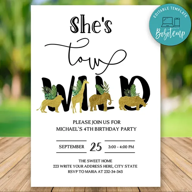Editable Two Wild Birthday Invitation Boy Safari Animals Green Gold Sa Design My Party Studio from cdn.shopify.com Maybe you would like to learn more about one of these? Check spelling or type a new query. We did not find results for: